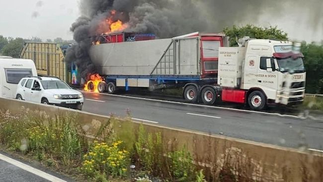 Emergency services were called to the blaze between junctions 22 and 23 near Bridgwater.