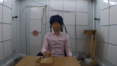 The benefit of the new technology is that it’s lightweight, cheaper and you can move while wearing it. In one test I’m asked to turn on the spot. Scientists monitor my brain activity in real-time. If I had early Parkinsons they would be able to detect signs of disease from my neural responses.