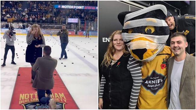 Father-of-two proposes on the ice at the couple's first Nottingham Panthers game