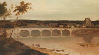 The painting was made by English landscape artist William Daniell and showcased the bridge of the River Tweed in Kelso.