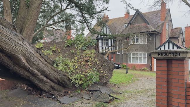 The seaside town was battered by 75mph winds during the storm, with trees ripped down and homes left without power.