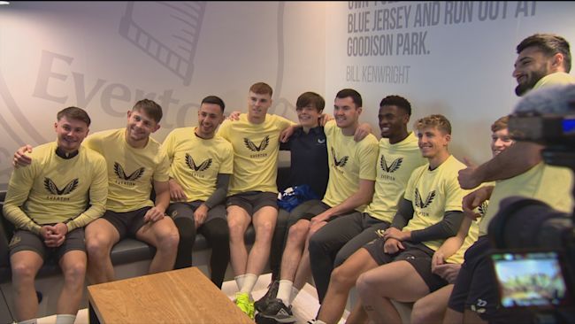 Everton fan who travelled from Australia for postponed game meets players